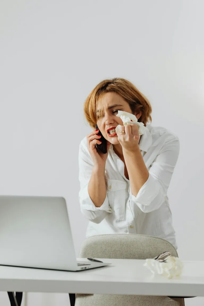 Grayscale shot of an emotional woman covering her face | Source: Pexels