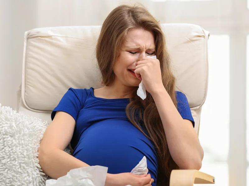 A pregnant woman holding her stomach | Source: Midjourney