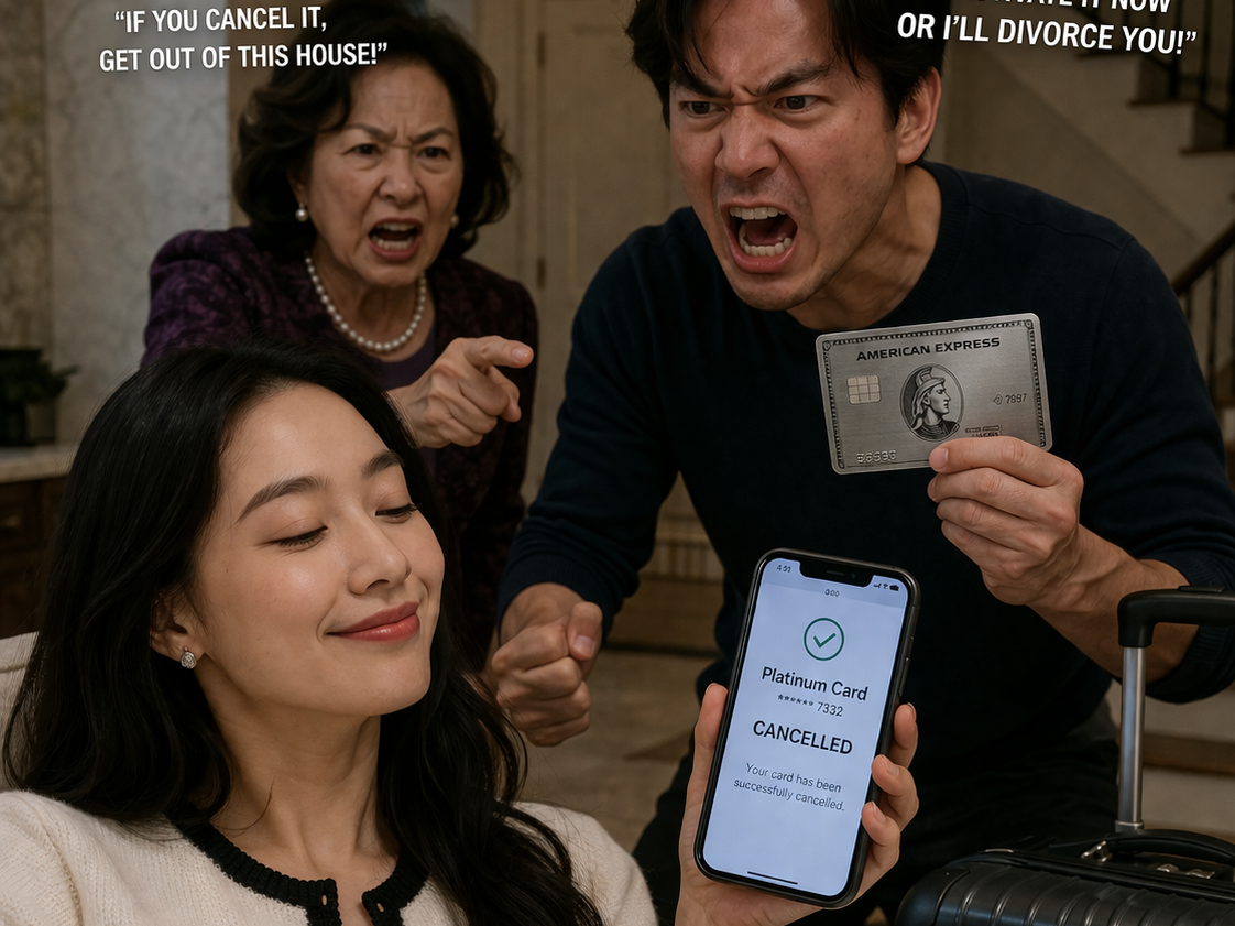 When I canceled the card, he called from the airport yelling, “Turn it back on right now or I’ll divorce you!” His mother even threatened to kick me out of the house.
