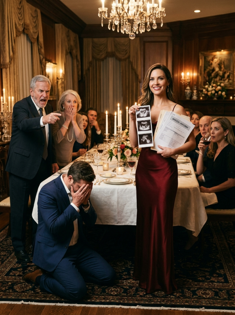 Then, at Thanksgiving, my father-in-law shoved divorce papers across the table in front of a room full of guests, while my mother-in-law proudly stood beside the woman they had already chosen to replace me. He told me to sign and disappear because their family “needed a future.” I signed without a word. Then my lawyer friend laid down two documents: proof of my husband’s vasectomy and proof that I was eight weeks pregnant. The room went silent. My father-in-law lost all color. My husband looked like he’d stopped breathing. I stood up, looked at them, and said, “You wanted an heir. Too bad you just signed away every claim to this child.”