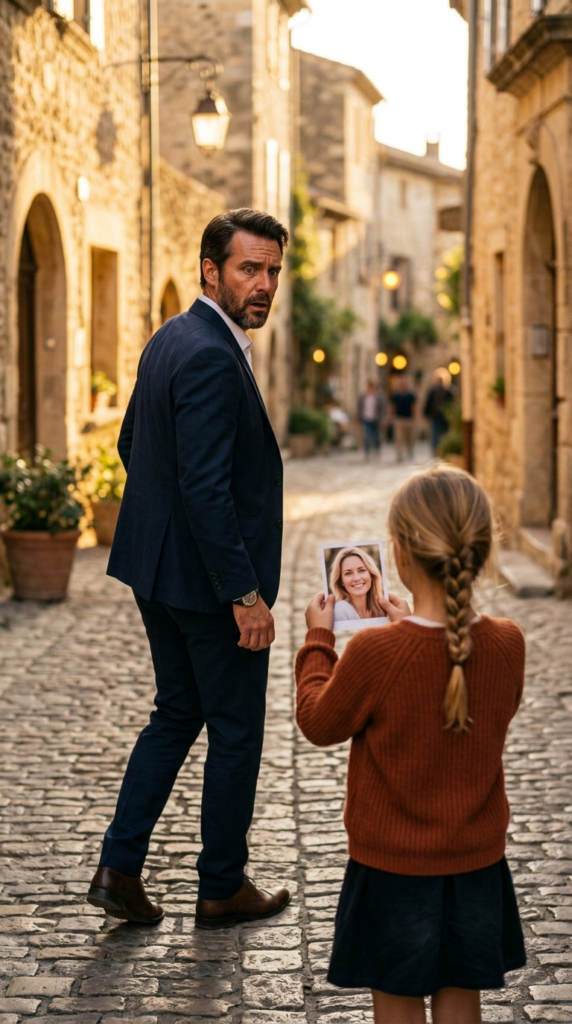 The man stood frozen in the gold evening light, staring at the little girl as if the dead had just spoken through her.