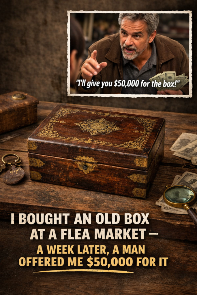 Three dollars bought me a dusty metal box I didn’t even plan to open. A week later, a tense stranger stood at my door with a $50,000 offer. I could have taken the money and walked away. Instead, I opened it.