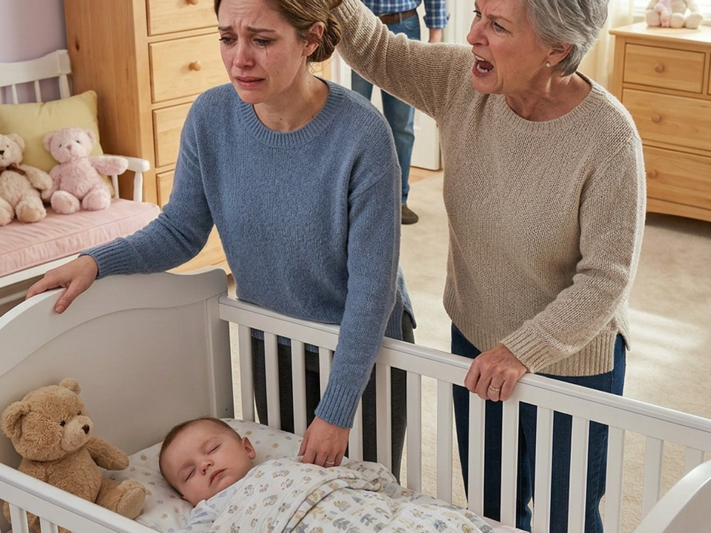 The nursery door was half open. Inside, Noah was asleep in his crib, one tiny fist tucked near his cheek, while Lily stood beside the changing table with red eyes and a strand of hair out of place, like she had tried to fix it too quickly. My mother stood by the dresser folding baby blankets with the calm focus of someone performing innocence.