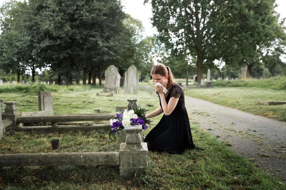 A grieving young woman mourning before a loved one’s grave | Source: Freepik