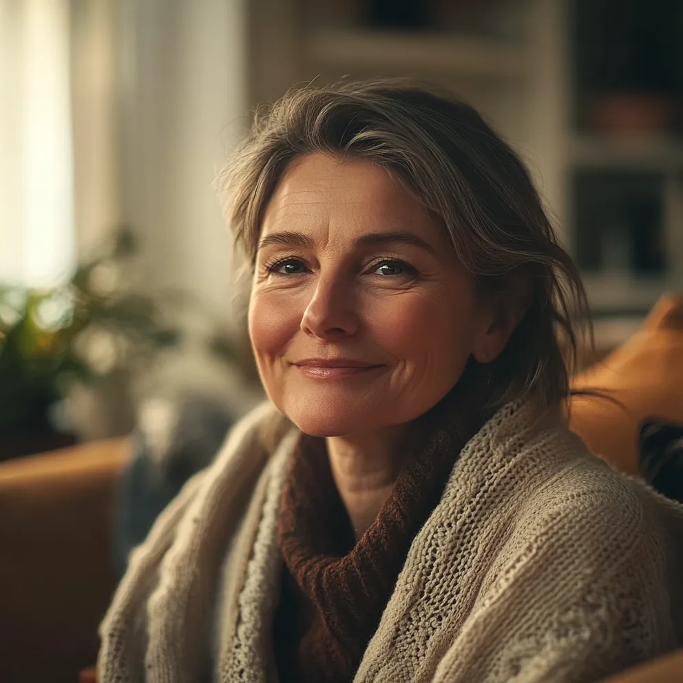 A middle-aged woman smiles softly while looking at someone | Source: Midjourney